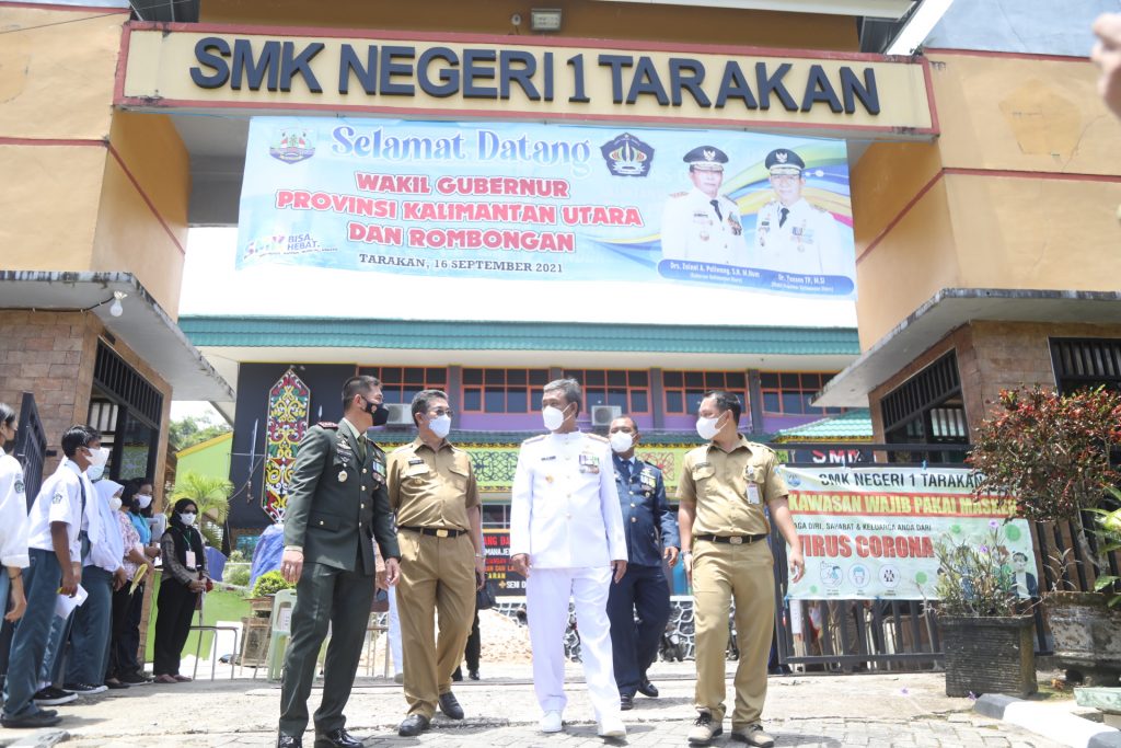 TARAKAN, lingkaranberita.com – Wakil Gubernur (Wagub) Kalimantan Utara (Kaltara), Dr. Yansen TP. M.Si berkesempatan hadir meninjau vaksinasi untuk pelajar di Sekolah Menengah (SMK) Negeri 1 Tarakan, Selasa (5/10/2021)