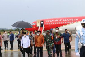 Tepat 08.57 wita pesawat kepresidenan Boeing Business Jet 2 (BBJ-2) membawa Wapres Ma’ruf Amin didampingi Menteri Dalam Negeri Tito Karnavian, Sekretaris Eksekutif Komite Pengarah Reformasi Birokrasi Nasional (KPRBN) Eko Prasojo, Plt. Kepala Sekretariat Wapres Ahmad Erani Yustika dan rombongan tiba di Bandara APT Pranoto Samarinda.