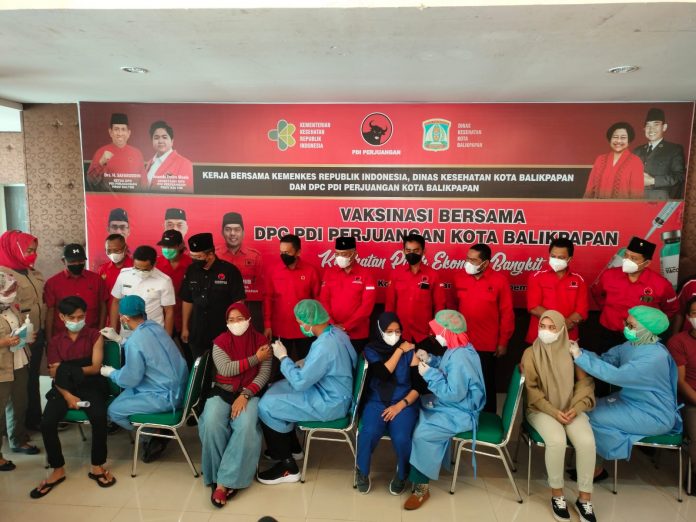 “Vaksinasi hari ini merupakan pelaksanaan vaksinasi yang keenam kalinya yang dilaksanakan DPC PDI Perjuangan,” ucap Ketua DPC PDI Perjuangan Balikpapan Budiono.