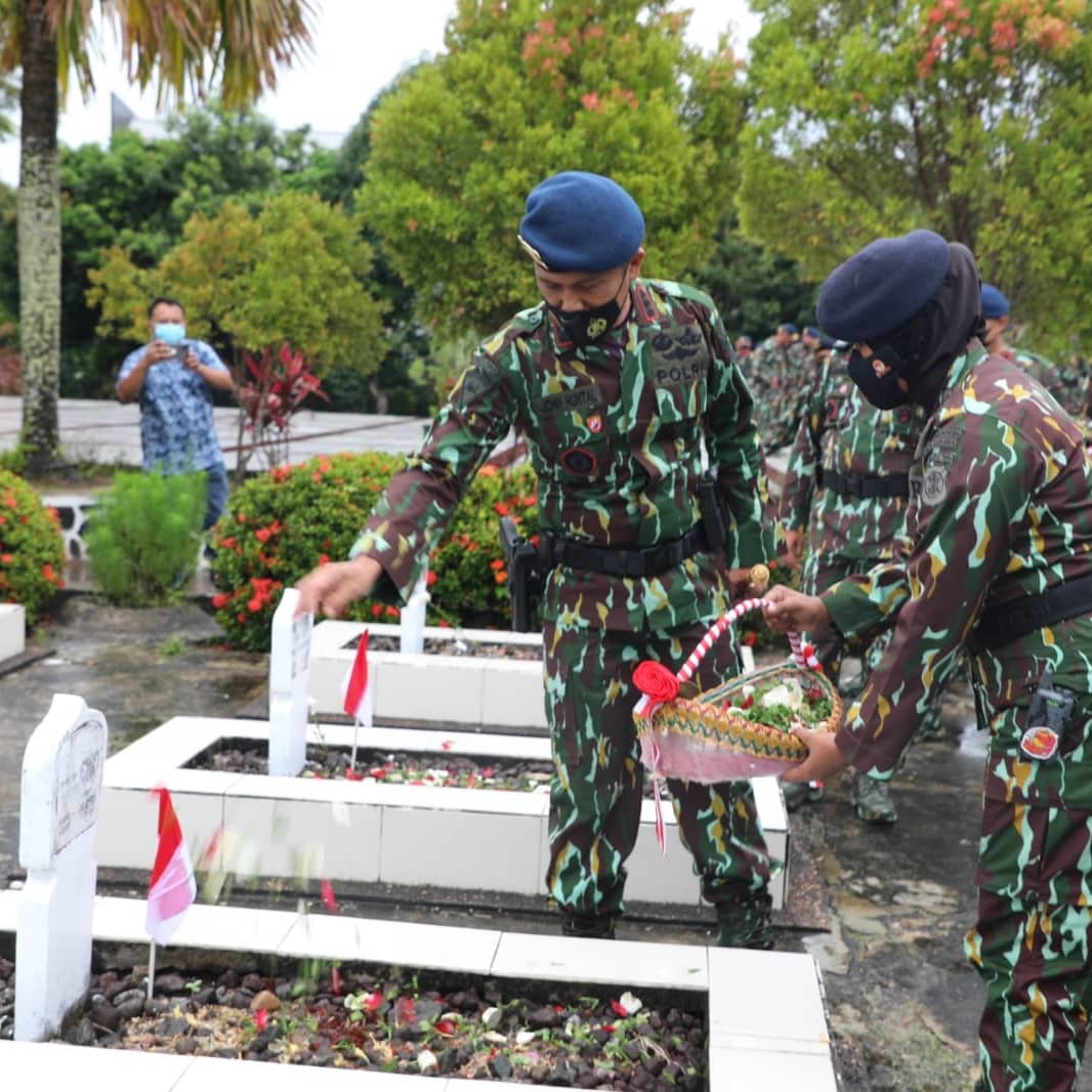 Selain melakukan upacara, Satbrimob Polda Kaltim juga meletakkan karangan bunga sebagai tanda penghormatan kepada paraa suhada dan pahlawan yang telah gugur.