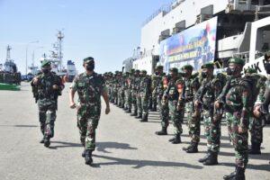 Lingkaranberita.com, BALIKPAPAN – Setelah melaksanakan perjalanan yang cukup jauh dan melelahkan mengarungi lautan luas dengan mengunakan KRI Teluk Bintuni-520, akhirnya 450 personel yang tergabung dalam satgas pamtas RI-PNG Yonif 611/Awang Long tiba di Pelabuhan Semayang Balikpapan.