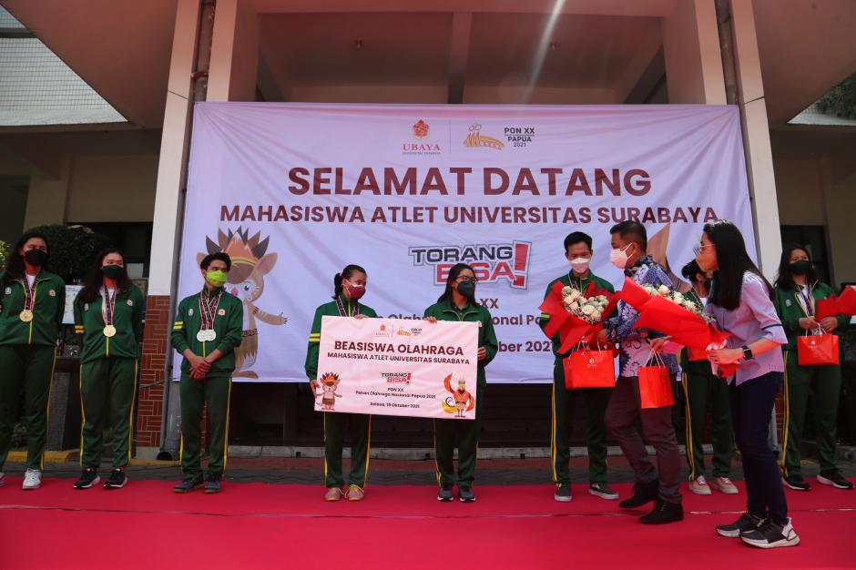 Sebagai bentuk apresiasi kepada mahasiswa atlet yang telah berjuang dan berkompetisi di ajang PON XX Papua 2021, Ubaya memberikan apresiasi berupa beasiswa olahraga dengan potongan UPP dan USP hingga 100 persen bagi mahasiswa atlet yang membawa pulang medali.