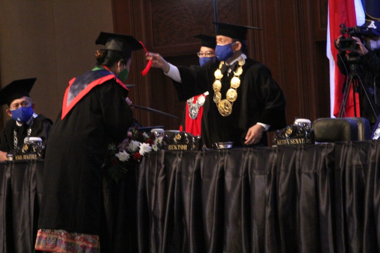 “Dengan memenuhi ketiga unsur itu maka diharapkan wisudawan/wati akan menjadi manusia siap berkontribusi dalam pembangunan masyarakat Indonesia di era industri 4.0 dan digital economy menuju Indonesia Emas 2045,” lanjut Rektor Kadarsyah.