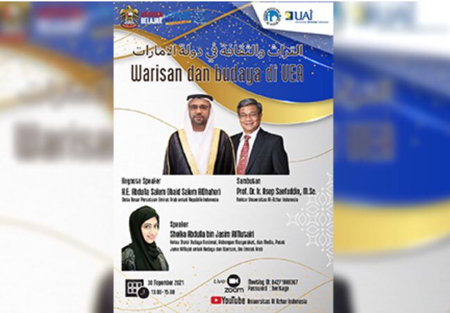 Acara yang diselenggarakan secara virtual ini, diadakan pada Selasa (30/11) lalu dan menghadirkan Rektor UAI, Prof. Dr. Ir. Asep Saefuddin, M.Sc serta Duta Besar UEA, H.E. Abdulla Salem AlDhaheri.