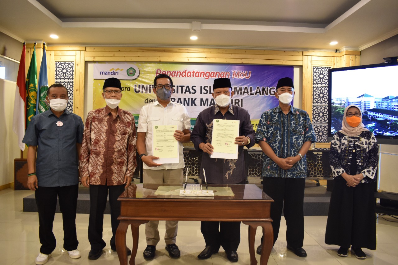 Penandatanganan ini dilakukan langsung oleh Rektor Unisma, Prof Dr H Maskuri Msi dan CEO Regional VIII/Jawa 3 Bank Mandiri, I Gede Raka Arimbawa dengan terbatas serta penerapan protokol kesehatan ketat, di Gedung Umar Bin Khattab Unisma, pada Selasa (23/11).