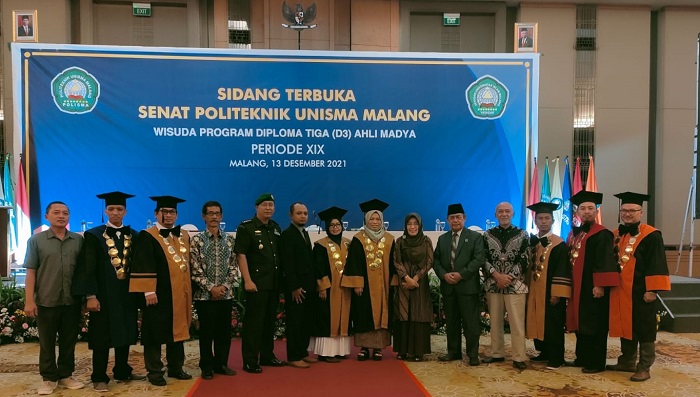 LINGKARANBERITA.COM, MALANG – Politeknik Unisma sukses menggelar Wisuda Program Diploma Tiga (D3) Ahli Madya Periode XIX di Hotel Harris, Senin (13/12). Sebanyak 37 mahasiswa resmi menjadi Ahli Madya pada wisuda yang dilakukan secara protokol kesehatan ketat.
