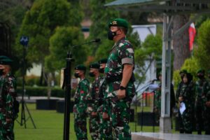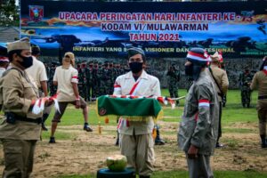 LINGKARANBERITA.COM, BALIKPAPAN – Inspektorat Kodam (Irdam) VI/Mlw Brigjen TNI Bambang Indrayanto memimpin upacara Hari Infanteri ke-73 Tahun 2021 di Lapangan Upacara Markas Batalyon Infanteri Raider 600/Modang, Kelurahan Manggar, Balikpapan pada Minggu (19/12/2021).