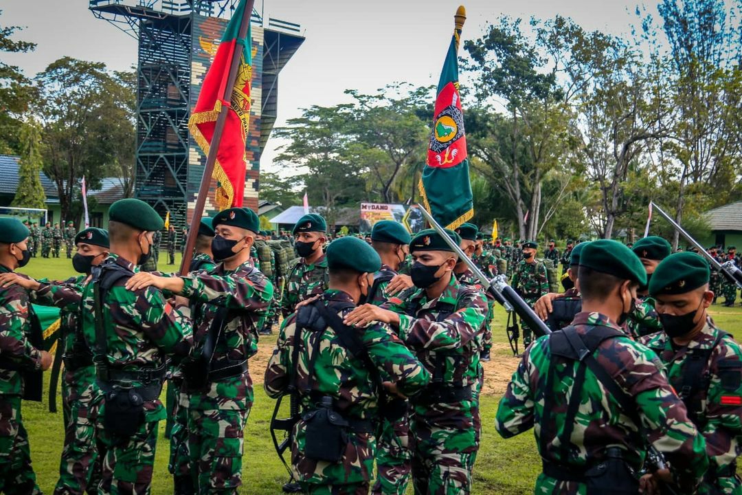 LINGKARANBERITA.COM, BALIKPAPAN – Inspektorat Kodam (Irdam) VI/Mlw Brigjen TNI Bambang Indrayanto memimpin upacara Hari Infanteri ke-73 Tahun 2021 di Lapangan Upacara Markas Batalyon Infanteri Raider 600/Modang, Kelurahan Manggar, Balikpapan pada Minggu (19/12/2021).