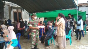 LINGKARANBERITA.COM, KUTAI KARTANEGARA – Serka Heri Sutopo bersama para Babinsa Koramil 0906-01/Tenggarong melakukan pemantauan dan pendampingan dalam kegiatan serbuan vaksinasi Kodim 0906/ Kutai Kartanegara (Kkr) yang dilaksanakan di Jalan Long Apari RT 15 Desa Spontan Kelurahan Mangkurawang Kecamatan Tenggarong Kabupaten Kutai Kartanegara (Kukar) Senin (20/12/2021).