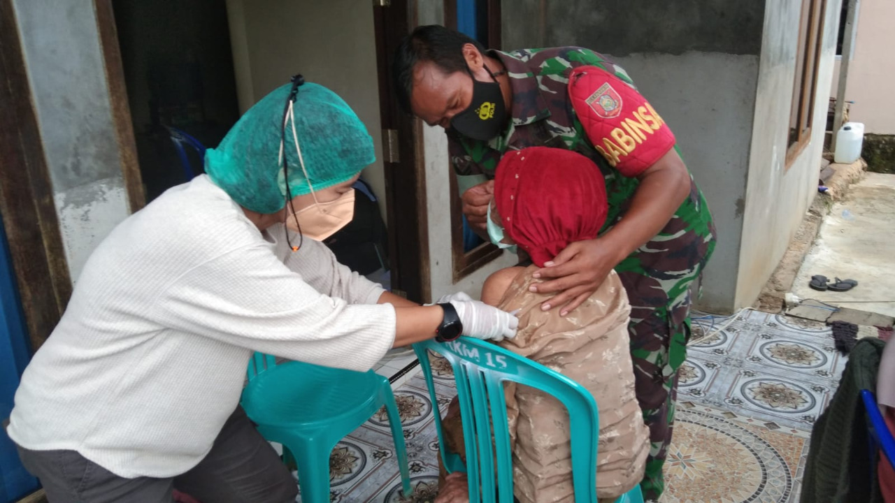 LINGKARANBERITA.COM, KUTAI KARTANEGARA – Serka Heri Sutopo bersama para Babinsa Koramil 0906-01/Tenggarong melakukan pemantauan dan pendampingan dalam kegiatan serbuan vaksinasi Kodim 0906/ Kutai Kartanegara (Kkr) yang dilaksanakan di Jalan Long Apari RT 15 Desa Spontan Kelurahan Mangkurawang Kecamatan Tenggarong Kabupaten Kutai Kartanegara (Kukar) Senin (20/12/2021).