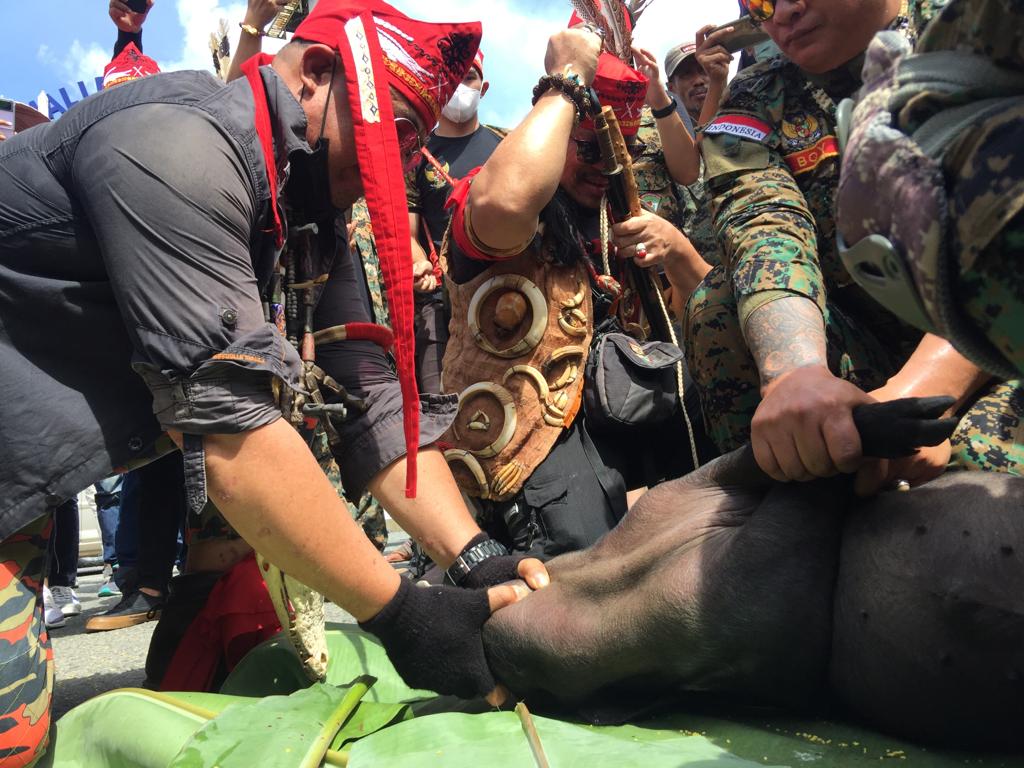 Ketum LPADKT-KU Vendy Meru SH menyembelih babi hitam sebagai bentuk kekecewaan terhadap ujaran yang disampaikan Edy Mulyadi Cs.