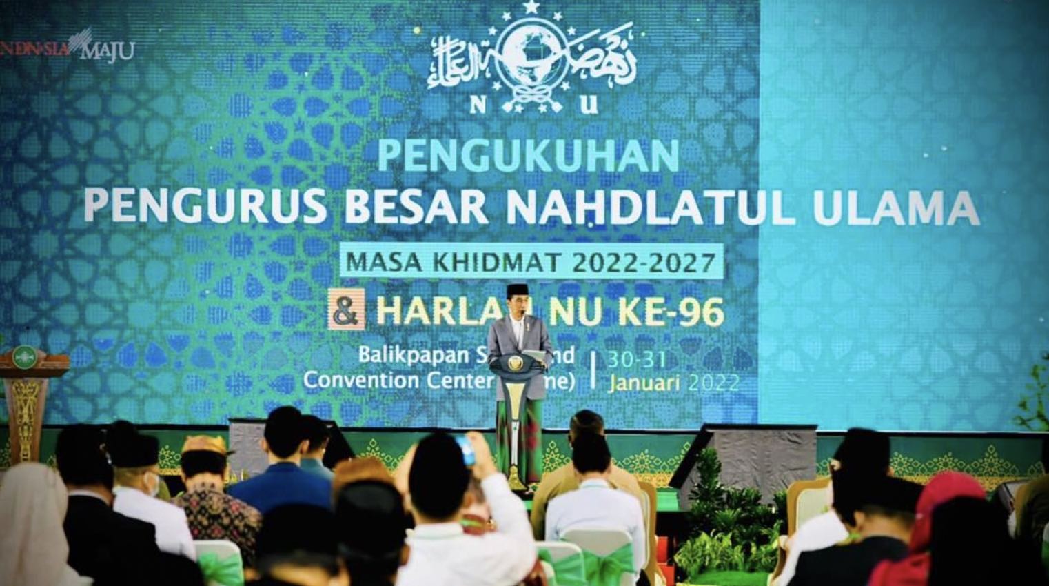 Demikian disampaikan Presiden Joko Widodo dalam sambutannya saat menghadiri Pengukuhan Pengurus Besar Nahdlatul Ulama (PBNU) Masa Khidmat 2022-2027 dan Harlah Ke-96 NU yang digelar di Balikpapan Sport and Convention Center, Kota Balikpapan, Provinsi Kalimantan Timur, pada Senin, 31 Januari 2022.