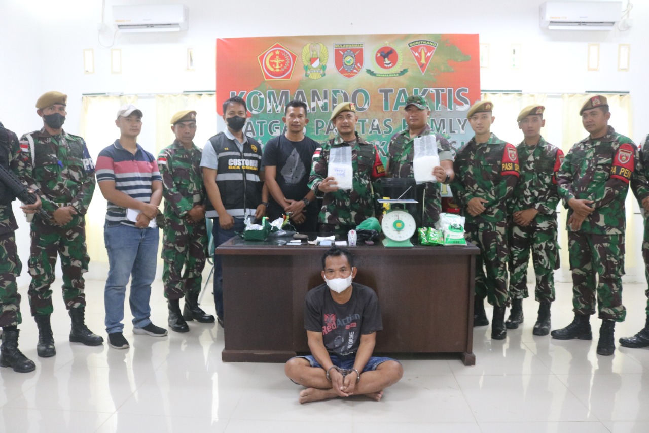 Anggota Staf Intel Satgas Pamtas berkoordinasi dengan Sat Res Narkoba Polres Nunukan untuk selanjutnya berhasil menangkap pemilik barang sdr T yang sedang berada di area perumahan sekitar pelabuhan Tunon Taka Nunukan.