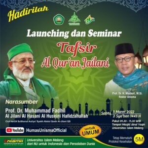 LINGKARANBERITA.COM, MALANG – Universitas Islam Malang (Unisma) secara istimewa mendapat kesempatan untuk menggelar soft launching dan seminar Tafsir Al Qur’an Jailani versi Terjemahan Berbahasa Indonesia, pada Sabtu (5/3/2022).