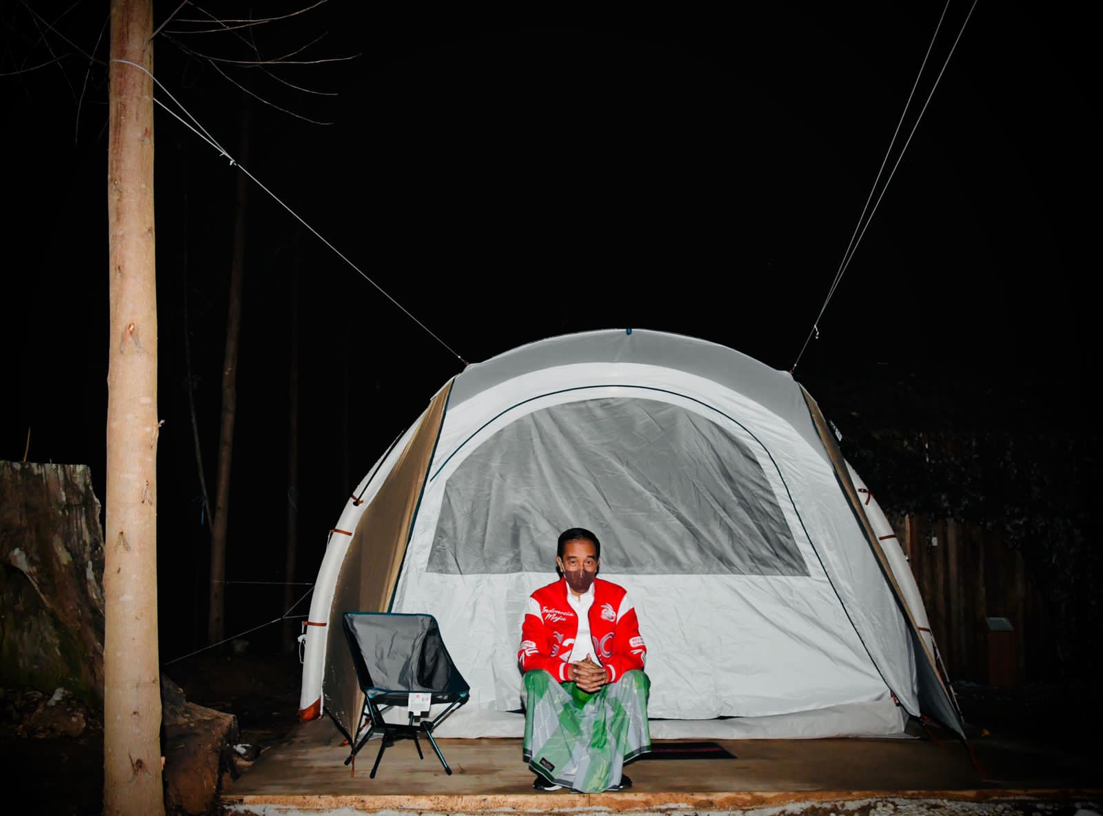 LINGKARANBERITA.COM, NUSANTARA – Udara sejuk dan cuaca cerah terasa pada malam hari di Ibu Kota Nusantara (IKN) di tempat Presiden Joko Widodo bermalam, Senin, 14 Maret 2022. Presiden Jokowi yang tampak mengenakan jaket merah bermotif G20 dan sarung bermotif kotak keluar dari tenda tempatnya bermalam sekitar pukul 22.15 WITA.