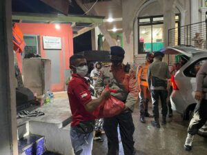 LINGKARANBERITA.COM, BALIKPAPAN – Satuan Brimob Polda Kaltim bagikan langsung makanan ke rumah warga korban banjir, Rabu malam (16/3/2022). Bantuan ini bertujuan membantu masyarakat korban banjir di Kota Balikpapan, Kaltim.