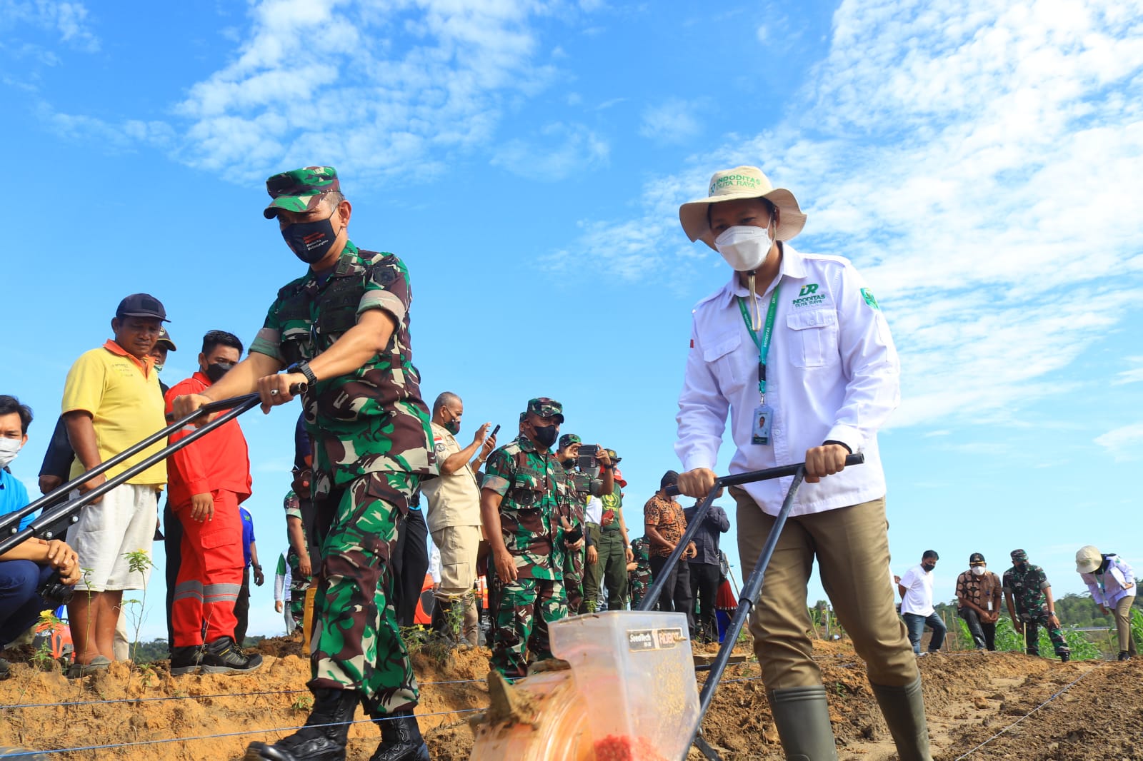 Khusus untuk penanaman awal jagung hari ini berada di lahan 3 Ha, sebagai lahan pemberdayaan masyarakat dengan Kelompok Tani sebagai penggarap dan pendampingan oleh PT. Indoditas Duta Raya. Selain itu sudah disiapkan lahan 7 Ha sebagai lahan inkubator untuk mencetak para Babinsa di jajaran Kodam VI/Mlw agar mampu menerapkan penanaman jagung melalui program Integrated Suistinable Agriculture Development (ISAD) Merdeka Pangan, PT. Indoditas Duta Raya.
