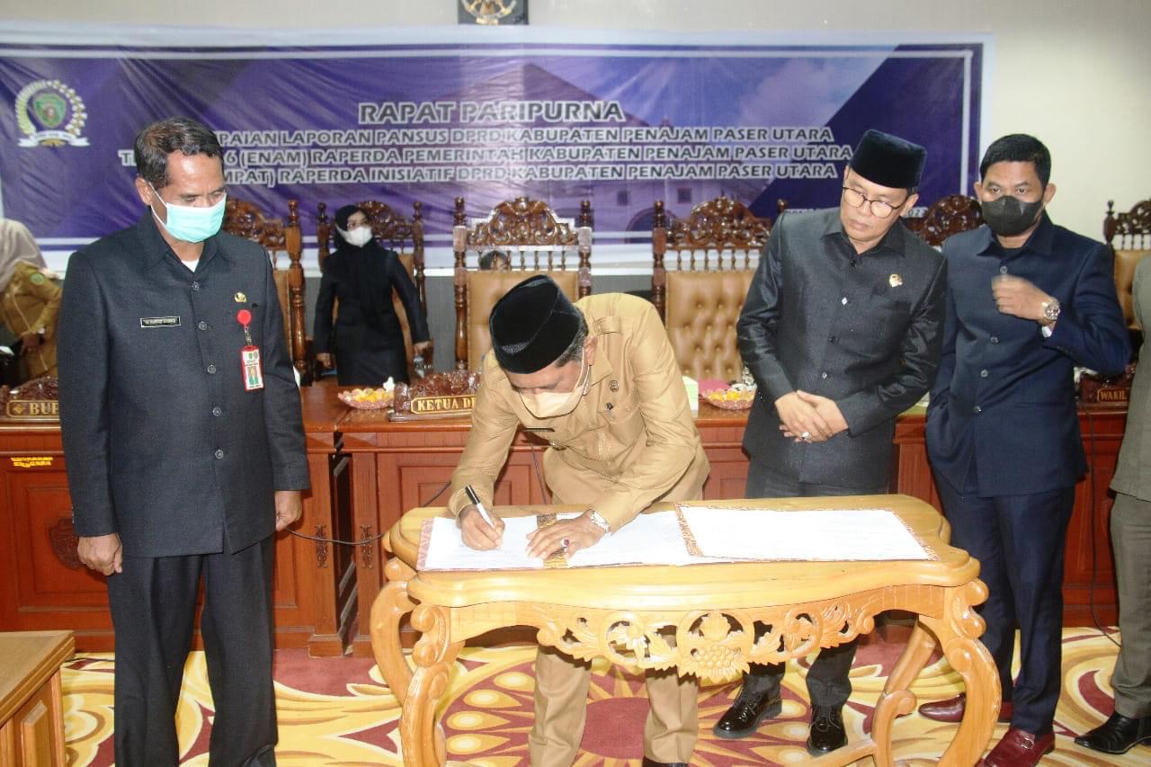 LINGKARANBERITA.COM, PENAJAM,- Sepuluh Rancangan Peraturan Daerah (Raperda) Kabupaten Penajam Paser Utara (PPU) disahkan menjadi Peraturan Daerah (Perda) pada Sidang Paripurna DPRD Kabupaten PPU yang digelar, Senin, (21/3/2022) siang.