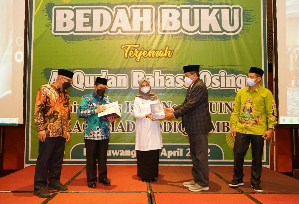 Sementara itu, Rektor UIN KHAS Jember Profesor Babun Soeharto menyebutkan bahwa Terjemah Al-Qur’an Bahasa Osing ini, merupakan kado untuk Banyuwangi. “Ini adalah bentuk terima kasih kami karena selama ini, Pemkab Banyuwangi telah turut melibatkan UIN KHAS dalam mencerdaskan putra daerah. Buku ini nantinya akan kita sebarkan ke seluruh sarjana lulusan UIN KHAS. Sehingga bahasa Osing bisa dikenal luas,” terangnya.