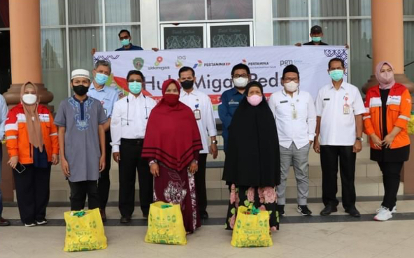 LINGKARANBERITA.COM, PENAJAM – Guna mendukung bantuan kepada masyarakat selama pandemi COVID-19 di Kabupaten Penajam Paser Utara (PPU), Satuan Kerja Khusus Pelaksana Kegiatan Usaha Hulu Minyak dan Gas Bumi (SKK Migas) dan PT Pertamina Hulu Kalimantan Timur (PHKT) bekerjasama Pemerintah Kabupaten Penajam Paser Utara (PPU), Rabu (27/4/2022), menggelontorkan bantuan paket sembako kepada masyarakat.