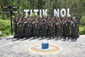 APEL BERSAMA: Pangdam VI/Mlw Mayjen TNI Teguh Pudjo Rumekso bersama jajarannya di Titik Nol IKN Nusantara.