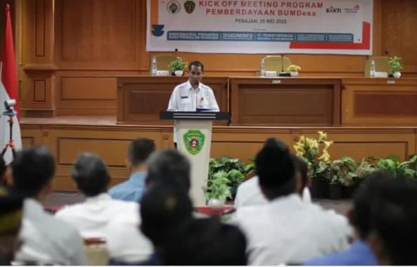 LINGKARANBERITA.COM, PENAJAM – Dinas Pemberdayaan Masyarakat dan Desa (DPMD) Kabupaten Penajam Paser Utara (PPU) kembali mengadakan program pemberdayaan Badan Usaha Milik Desa (BUMDes), bekerja sama dengan Kementerian Desa, Pembangunan Daerah Tertinggal dan Transmigrasi (Kemendes PDTT), Badan Aksesesibilitas Telekomunikasi dan Informasi (BAKTI) Kementerian Komunikasi dan Informatika, Dinas Komunikasi dan Informatika (Diskominfo) PPU dan Telkom Indonesia. Kegiatan ini dilaksanakan di aula lantai I kantor Bupati PPU, Rabu (25/05/2022).