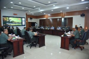 LINGKARANBERITA.COM, BALIKPAPAN—Panglima Kodam VI/Mulawarman Mayor Jenderal TNI Teguh Pudjo Rumekso didampingi Kasdam VI/Mlw Brigjen TNI Ibu Bintang Sertiawan dan Irdam VI/Mlw Brigjen TNI Bambang Idrayanto  menghadiri Taklimat Akhir Audit kinerja Itjen TNI Periode II TA. 2022 yang dipimpin oleh  Wairjen TNI, Mayjen TNI Farid Makruf, yang didampingi M.A. Irlat Itjen TNI, Brigjen TNI Ahmad Suprianto di ruang Yudha Makodam VI/Mlw  Balikpapan Kamis (16/6).