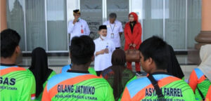 Turut hadir melepas keberangkatan para atlet, Asisten Bidang Ekonomi dan Pembangunan Sekretariat Daerah PPU, Ahmad Usman serta istri Plt. Bupati PPU, Satriyani Sirajuddin Hamdam.