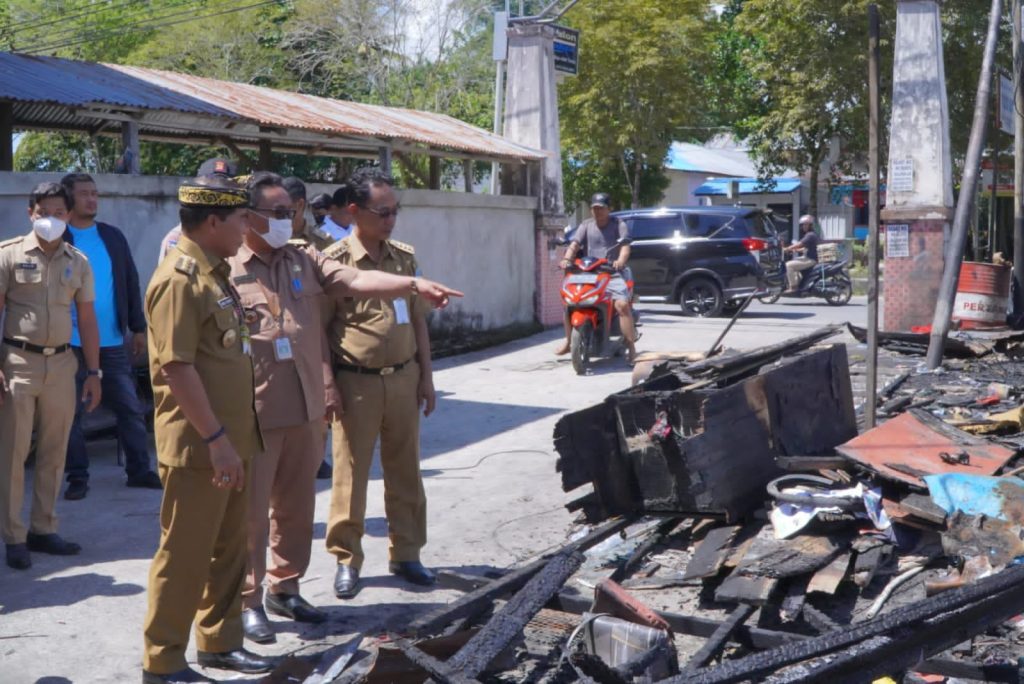 Selain meninjau lokasi kebakaran yang menghanguskan 6 kios ini, Gubernur juga berjumpa langsung dengan para korban sekaligus menyalurkan bantuan berupa uang tunai.