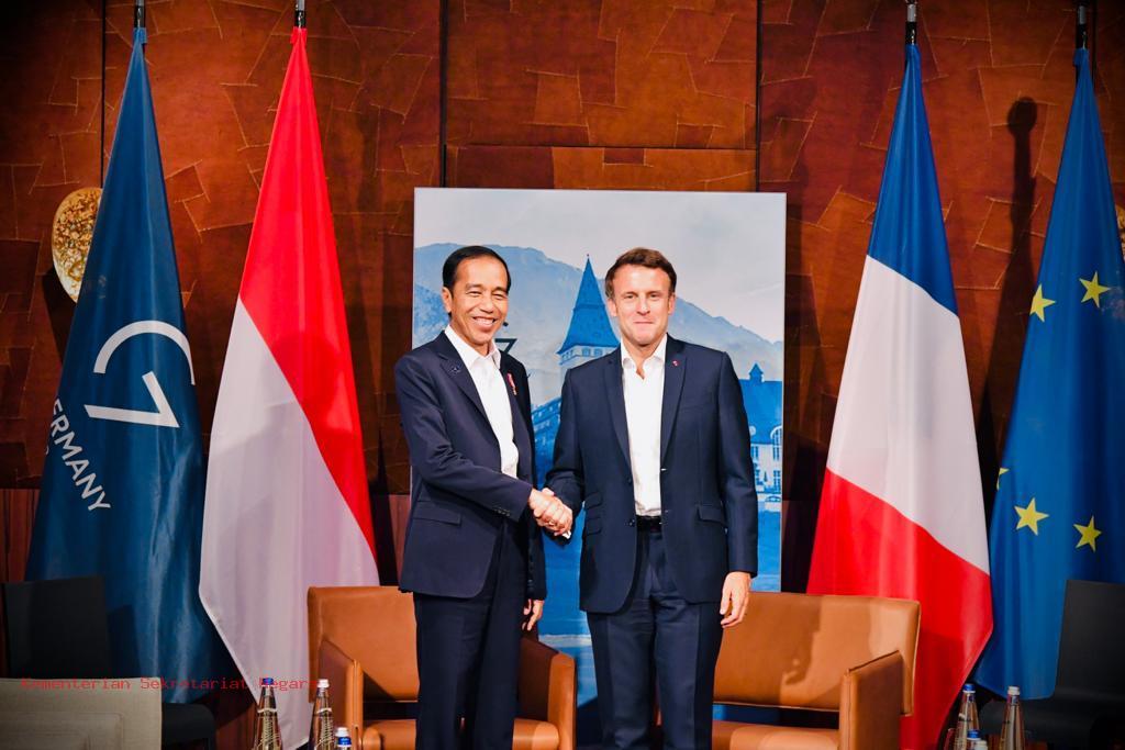 LINGKARANBERITA.COM, NASIONAL – Presiden Jokowi melakukan pertemuan bilateral dengan Presiden Prancis Emmanuel Macron di sela-sela KTT G7 di Elmau, Jerman, Senin, 27 Juni 2022. Kedua pemimpin membahas situasi di Ukraina juga terkait Presidensi G20 Indonesia.