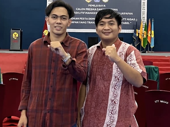 LINGKARANBERITA.COM, BALIKPAPAN – Julio Christalino Marcello Egbert Antou dan Fadhilah Nur Anuar terpilih sebagai President dan wakil President Badan Eksekutif Mahasiswa (BEM) Sekolah Tinggi Teknologi Minyak dan Gas Bumi (STT-Migas) Balikpapan masa 2022/2023.