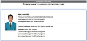 Sebagai informasi, Masyhuri telah melewati beberapa tahapan tes LPDP dalam negeri. Diantaranya Tes Administrasi, Tes Bakat Skolastik, Tes Subtansi. Jika sudah lulus tes subtansi, dapat dikatakan sudah resmi menjadi penerima beasiswa LPDP dalam negeri.(**)