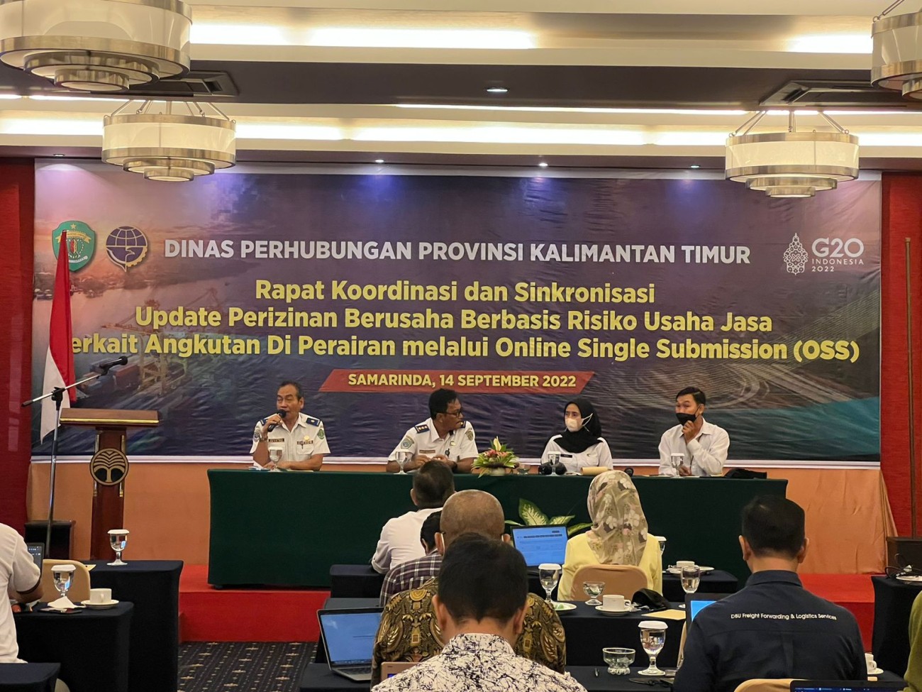 LINGKARANBERITA.COM, SAMARINDA – Dinas Perhubungan Provinsi Kalimantan Timur melalui Bidang Pelayaran melaksanakan kegiatan Rapat Koordinasi dan Sinkronisasi Perizinan Berusaha Berbasis Risiko Usaha Jasa Terkait Angkutan di Perairan melalui Online Single Submission (OSS) di Hotel Bumi Senyiur Samarinda, (14/09).