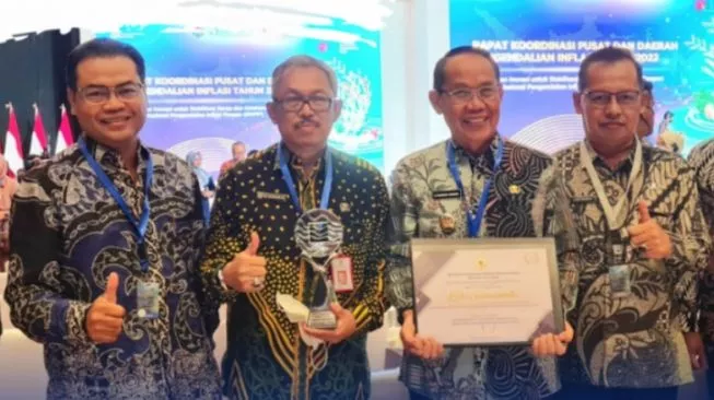 Penyerahan penghargaan TPID turut disaksikan Gubernur BI, Perry Warjiyo, Menteri Koperasi dan UMKM Teten Masduki dan Wakil Menteri Dalam Negeri John Wempi Wetipo.