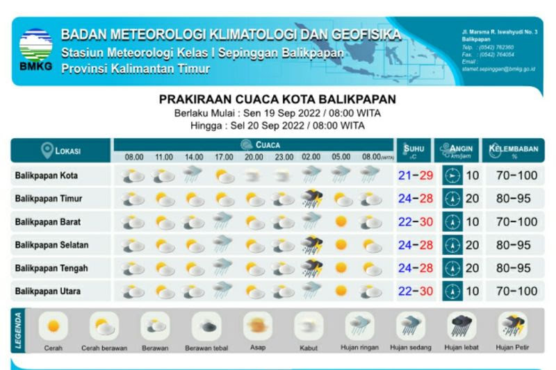 LINGKARANBERITA.COM, BALIKPAPAN – Terdapat Cuaca Ekstrem Wilayah Kalimantan Timur 19-21 September 2022 mendatang. Hal tersebut terdapat dalam Surat Imbauan Kewaspadaan Cuaca Ekstrem Wilayah Kalimantan Timur yang dikeluarkan Resmi oleh Badan Meteorologi, Klimatologi dan Geofisika Stasiun Meteorologi Sultan Aji Muhammad Sulaiman Sepinggan Balikpapan.