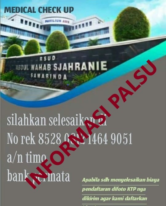 LINGKARANBERITA.COM SAMARINDA – Baru-baru ini beredar gambar di media sosial yang berisi informasi pembayaran Medical Check Up (MCU) di Rumah Sakit Umum Daerah (RSUD) Abdul Wahab Sjahranie (AWS). Alamat pembayaran itu ditujukan pada nomor rekening salah satu bank swasta, atas nama Timo.