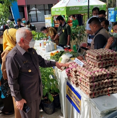 LINGKARANBERITA.COM, SAMARINDA – Berbagai bahan pokok mulai dari beras, telur, daging ayam hingga sayur-mayur dijual dengan harga murah dalam kegiatan Operasi Pasar Gelar Pangan Murah dari Dinas Pangan Tanaman Pangan dan Hortikultura (DPTPH) Provinsi Kalimantan Timur (Kaltim). Sebanyak 52 stan berpartisipasi dalam gelaran pasar murah tersebut. Tak hanya sembako dan kebutuhan pokok lainnya, pasar murah juga diisi dengan produk olahan pertanian dan peternakan, buah-buahan, serta kerajinan tangan.