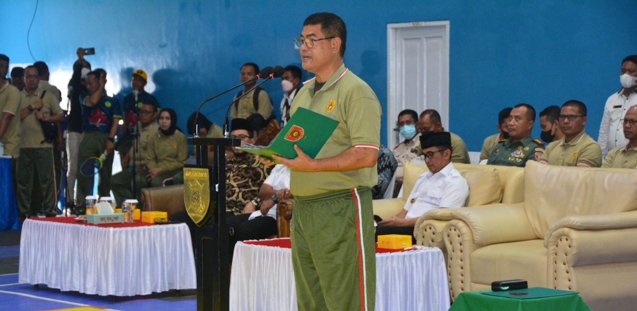 Kasdam VI/Mlw yang membacakan sambutan Pangdam VI/Mlw menyampaikan bahwa Pertandingan Bulu Tangkis Santri Pangdam VI Cup Tahun 2022 ini dilaksanakan dalam rangka menyambut HUT ke-77 TNI dan Peringatan Hari Santri Nasional Tahun 2022.
