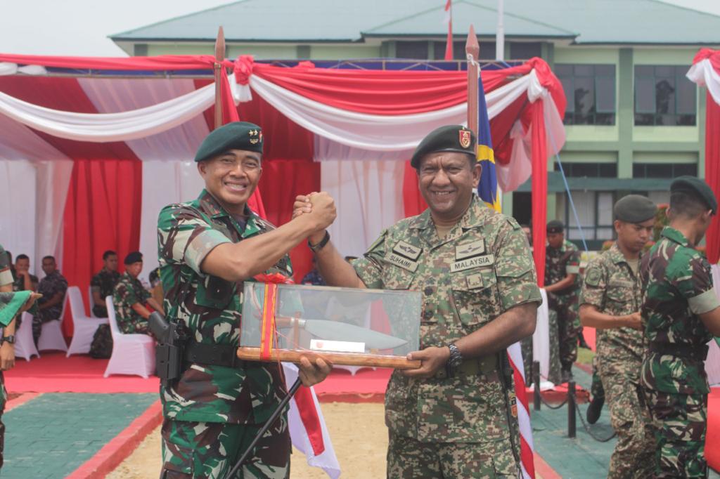 LINGKARANBERITA.COM, BALIKPAPAN – Pangdam VI/Mlw, Mayor Jenderal TNI Tri Budi Utomo secara resmi menutup Latihan Bersama (Latma) Keris Kartika Malaysia Indonesia-45AB/2022 (Kekar Malindo-45AB/2022), antara TNI AD dari Yonif Raider 613/Raja Alam dengan Tentera Darat Malaysia (TDM) di Daerah Latihan Kecamatan Juata Laut, Kota Tarakan, Kaltara. Senin (31/10/2022).