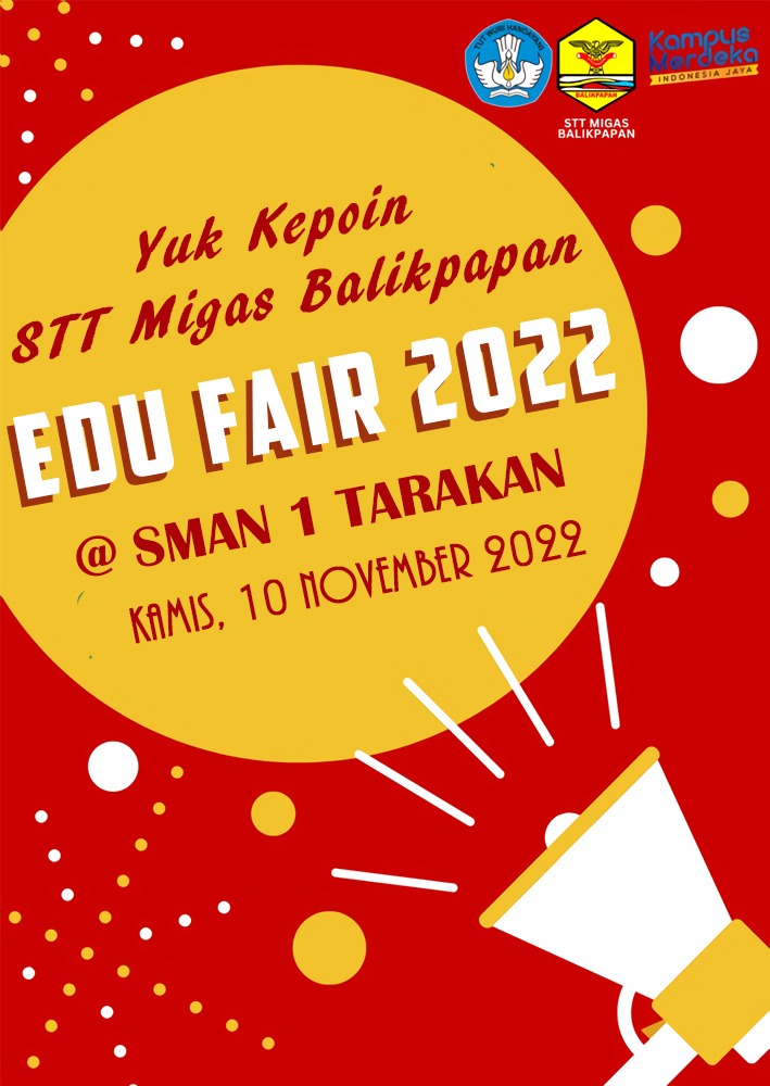 Pasalnya STT Migas akan hadir di Edu Fair 2022 yang akan berlangsung di SMA 1 Tarakan, Kalimantan Utara (Kaltara), 10 November 2022.