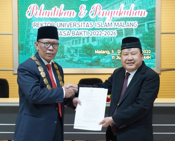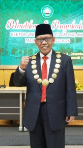 LINGKARANBERITA.COM, MALANG – Universitas Islam Malang (Unisma) kembali dinahkodai oleh Prof Dr Maskuri MSi sebagai rektor Unisma tahun 2022-2026. Ini kali ketiganya Prof Maskuri menjabat sebagai rektor di kampus putih itu. Tongkat kepemimpinan Prof Dr Maskuri MSi diberikan langsung oleh Dewan Pengurus Yayasan Ketua Umum Prof Dr H Yaqub Cikusin, pada pelantikan dan pengukuhan rektor Unisma masa bakti 2022-2026, Senin (5/12).