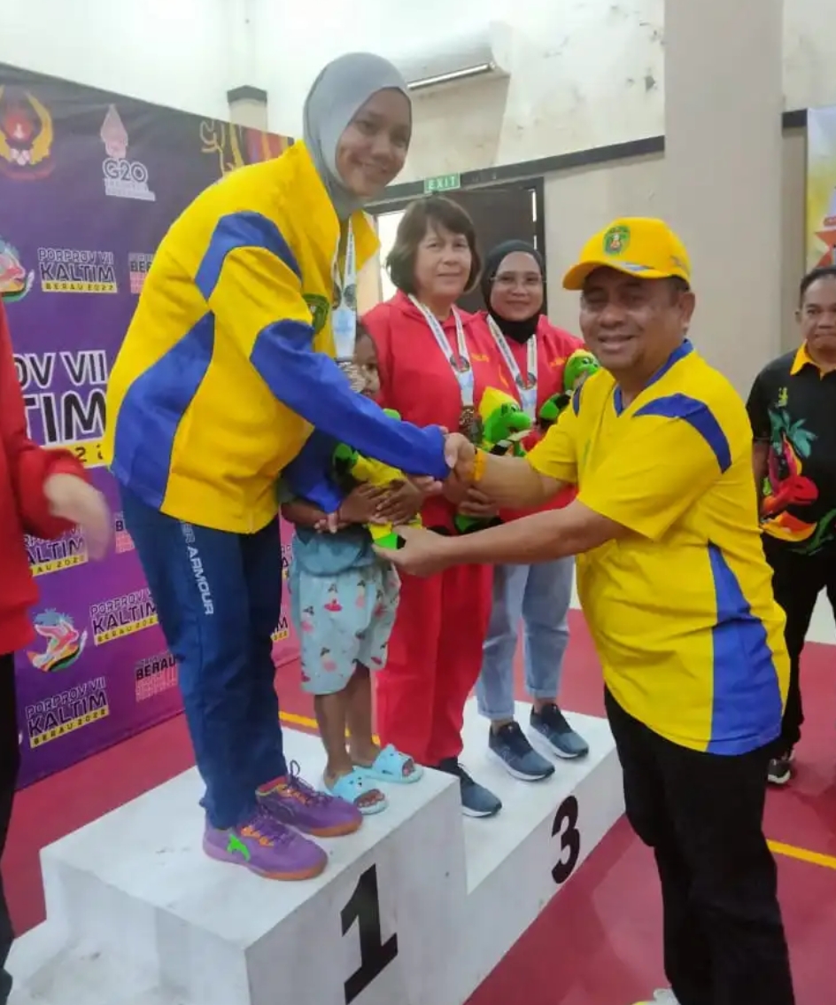 Medali didapat setelah mengandaskan perlawanan Mariana (Kukar) dengan skor 3:0, dalam pertandingan terakhir cabor Tenis Meja Porprov VII Kaltim 2022 yang dipusatkan di Ballrom Hotel Cantika Jalan Gunung Panjang Tanjung Redeb, Selasa (6/12/2022). Hasil positif ini pun disambut suka cita oleh Ketua Pengkab PTMSI Kutim dr Rahmad.