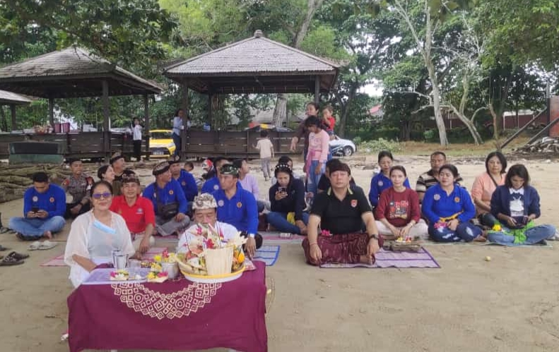 Kegiatan yang diikuti sekitar 30-an umat Hindu itu, dilakukan di Pantai Patriatama Halang Rintang Satbrimob Polda Kaltim, Balikpapan Selatan. (Balsel)