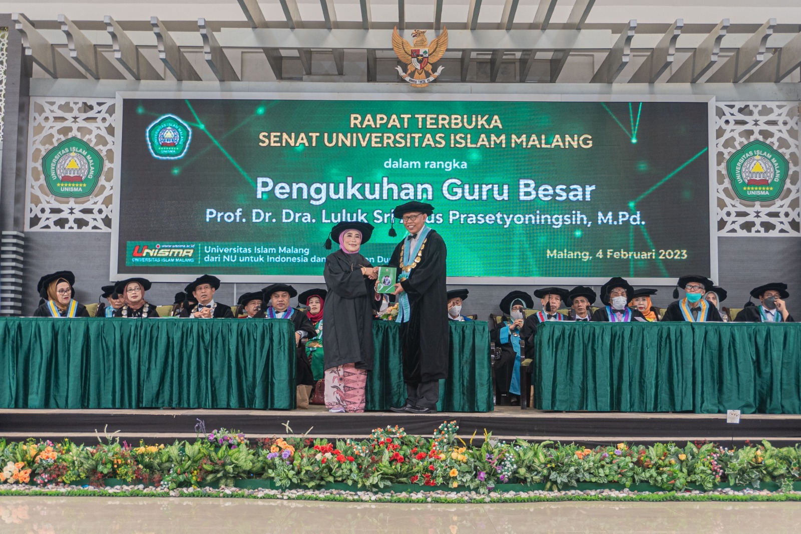 Prof Luluk secara resmi dikukuhkan oleh Rektor Unisma Prof Dr Maskuri MSi dengan disaksikan Kepala Lembaga Layanan Pendidikan Tinggi (LLDIKTI) Wilayah VII Jawa Timur, Prof Dr Dyah Sawitri SE MM, di Gedung Pascasarjana lantai 7, Sabtu (4/2).
