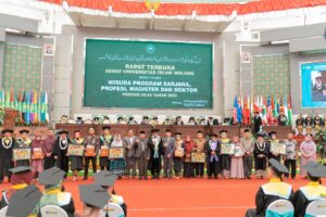 Lingkaranberita.com, MALANG – Universitas Islam Malang (Unisma) menggelar wisuda ke-69 pada Sabtu (25/2). Wisuda ke-69 ini diikuti 659 orang, terdiri dari: lulusan Program Sarjana dari 10 Fakultas (22 Program Studi), Program Profesi Dokter, Program Magister (ada 9 Program Studi) dan Program Doktor.