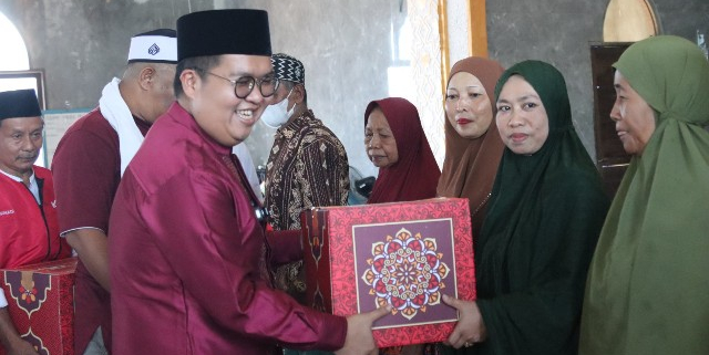 Wakil Bupati Rendi Solihin memberikan bantuan sembako dan bantuan pembangunan rumah ibadah di Masjid Jami’ Alma’mur.