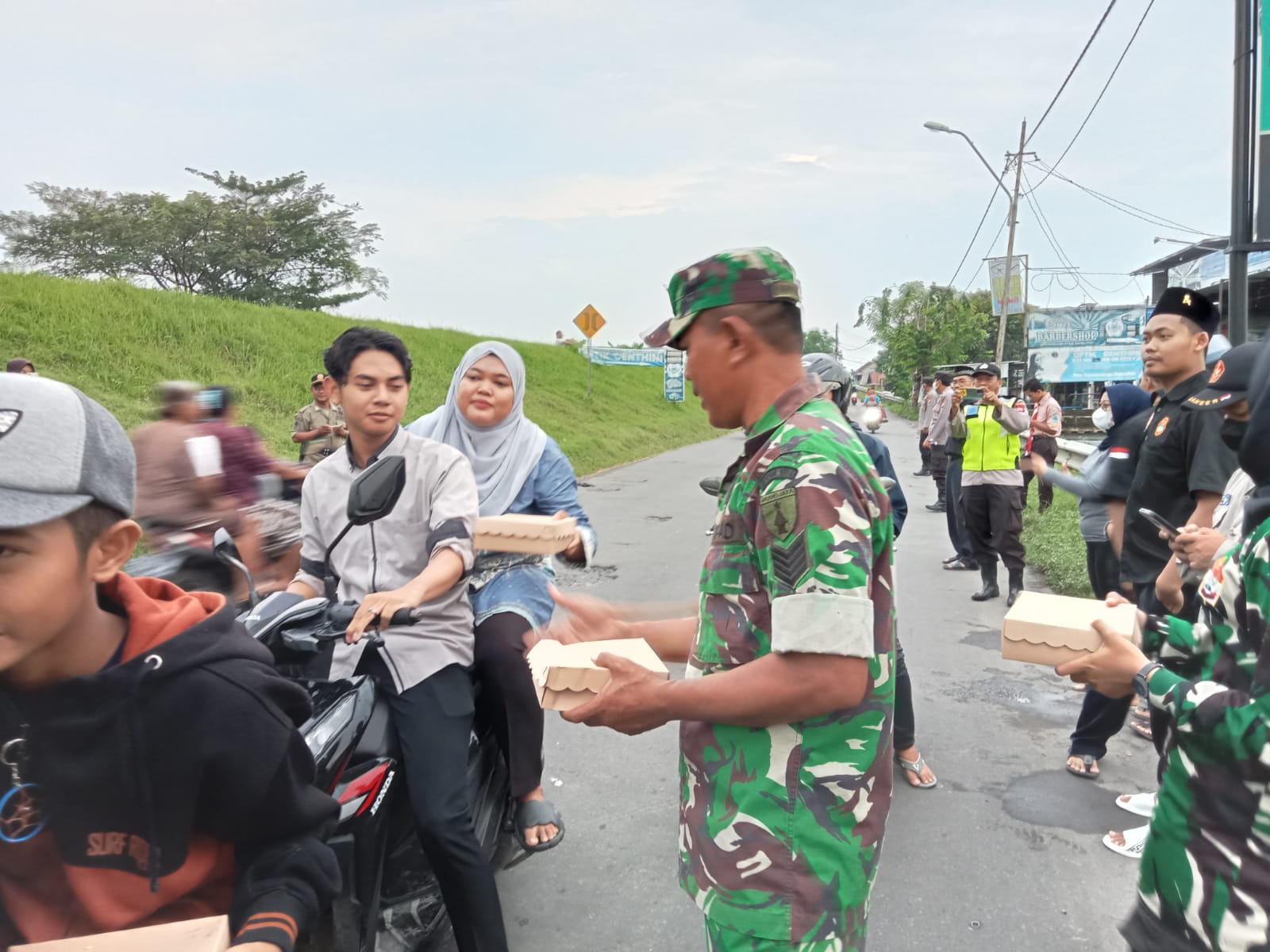 Tegaskan oleh Danramil Meski tidak seberapa takjil yang dibagikan, setidaknya kita berharao dapat membantu pengendara yang ingin berbuka puasa.