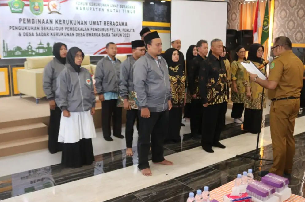 Lingkaranberita.com, SANGATTA – Wakil Bupati Kutai Timur Kasmidi Bulang mengukuhkan Pengurus Forum Pemuda Lintas Agama (Pelita) Kabupaten Kutim dan Pengurus Desa Sadar Kerukunan Desa Swargabara periode 2023-2028.