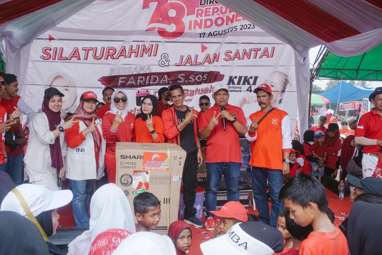Acara jalan santai dan Silaturahim ini, lanjut Rasyid Farida juga menyiapkan banyak hadiah. Mulai dari Mie, alat pertanian, alat bangunan, kompor, mesin cuci, sepeda hingga Kulkas. Selain hadiah yang begitu banyak, perempaun berdarah Bugis ini juga menghadirkan Kiki Bintang Pantura yang menghibur warga. (mas/*)