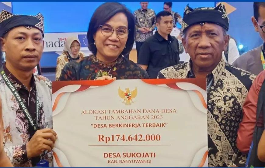 Lingkaranberita.com, BANYUWANGI – Desa Sukojati, Kecamatan Blimbingsari, Banyuwangi, meraih penghargaan dari Kementerian Keuangan (Kemenkeu) RI sebagai Pengelola Keuangan Terbaik. Atas prestasinya itu, Desa Sukojati diganjar mendapatkan tambahan Dana Desa (DD) senilai Rp. 174,6 Juta.